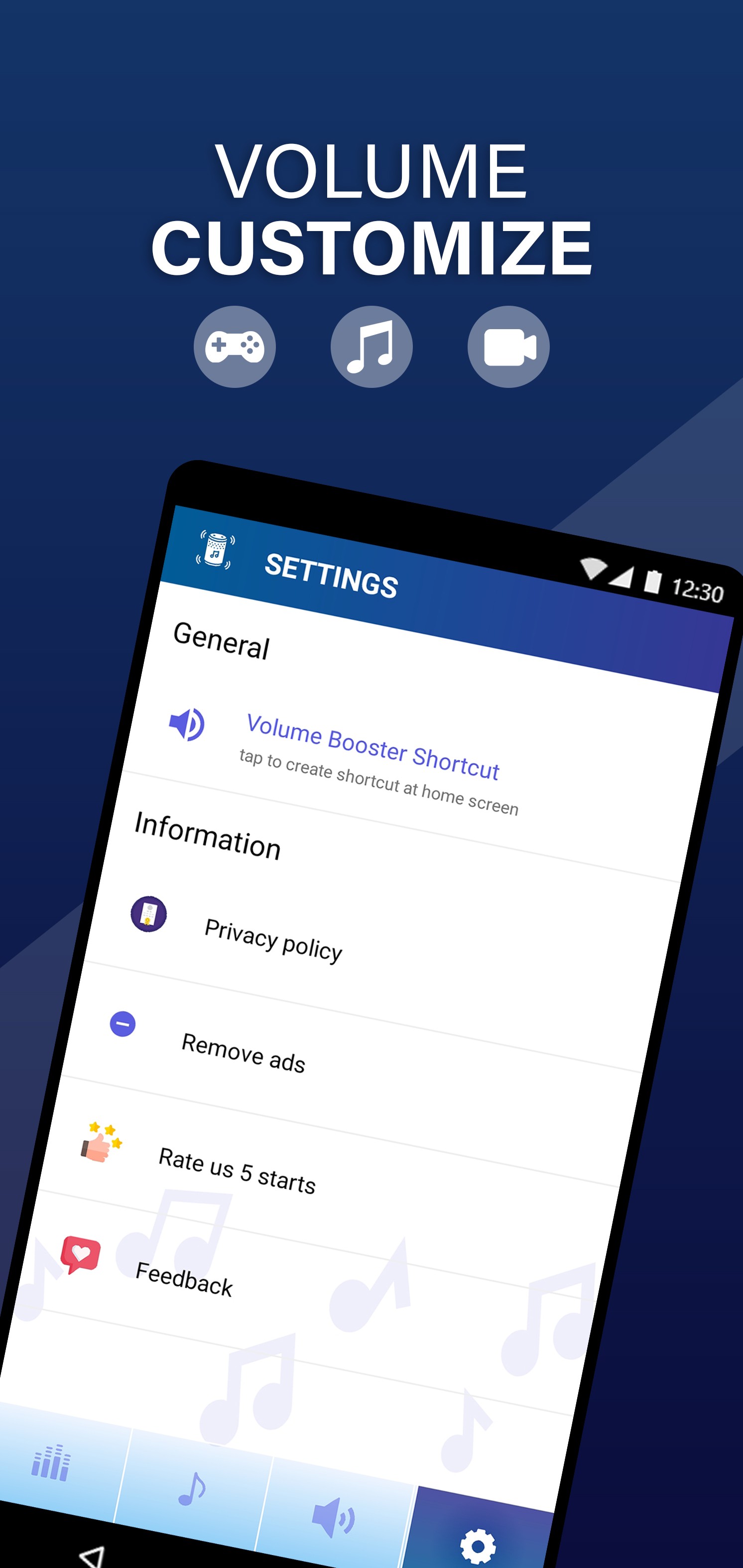 Playing audio at high volume for long hours may damage your hearing or damage your speakers. We advise you to boost the volume step by step, to get the appropriate volume, suitable for your needs. The developer of this sound booster application is not held responsible for any damage to hardware or hearing, due to excessive use of the volume boost feature.