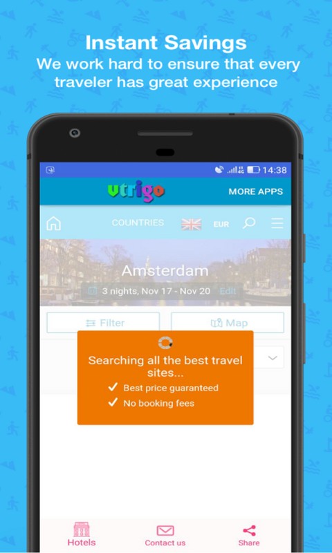 ✓ Vtrigo – Hotel Booking is Free and it will stay free for life, so there’s no hidden fees, no special memberships and no annual subscription fees.
