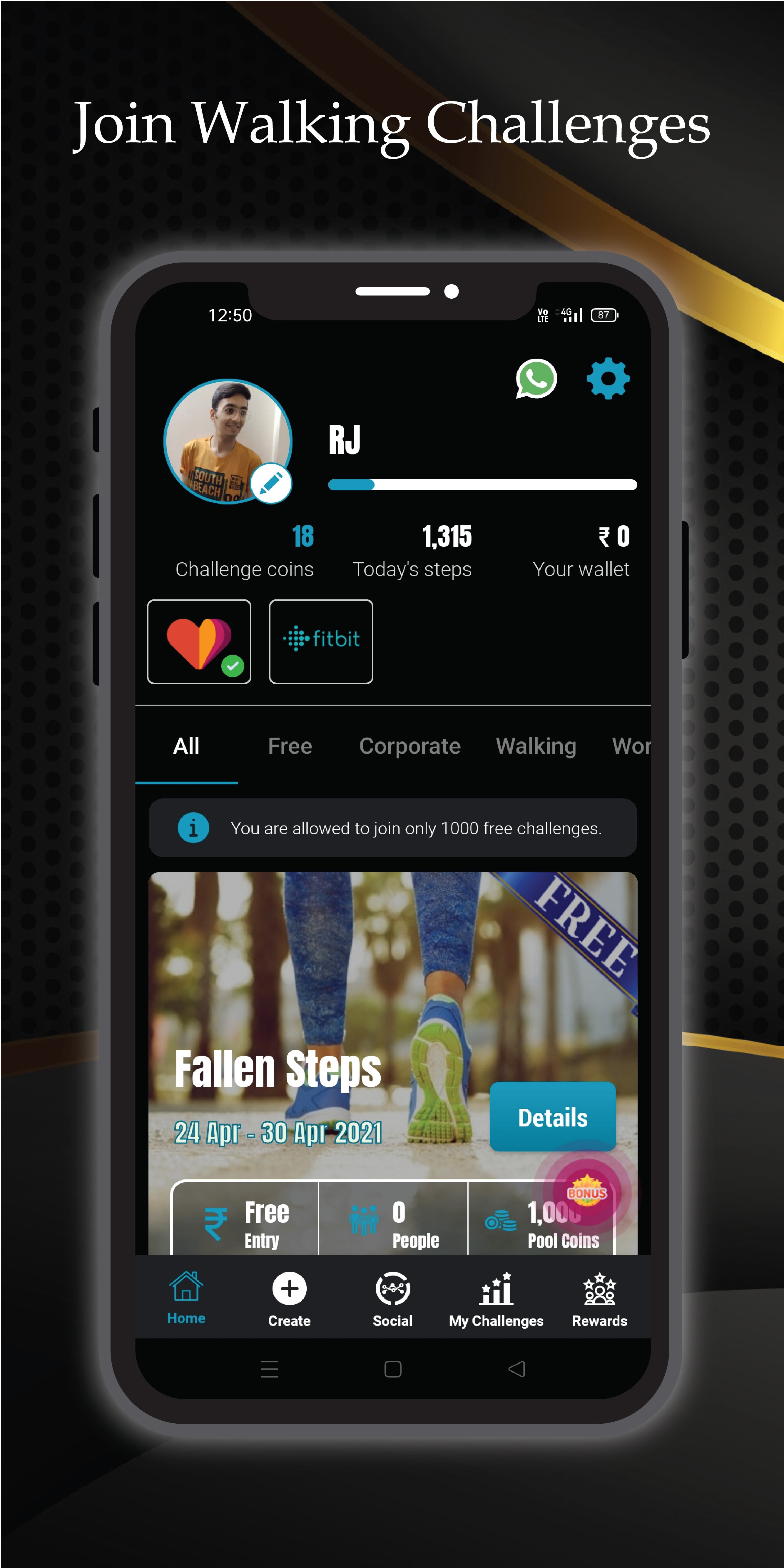 Walk Bet is a fitness challenge app, where you can get rewards by competing and winning in different types in fitness challenges. It is the best health and fitness app that motivates you for walking and staying fit and active. It also rewards you for walking. Download the app now!