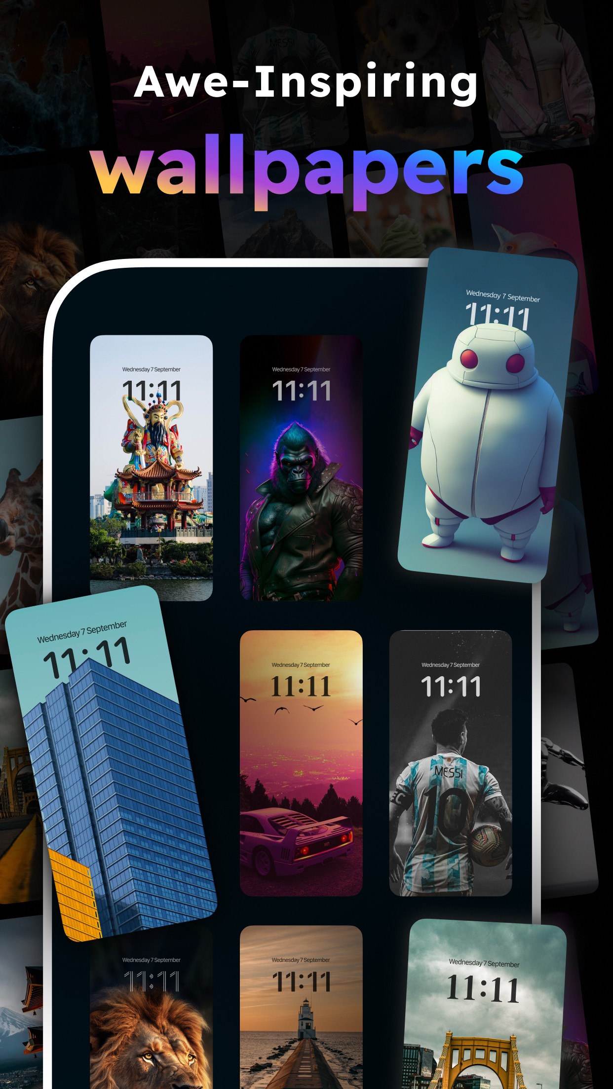 Elevate your device's style with Wallzy: your ultimate hub for exclusive wallpapers, widgets, and watch faces customization.