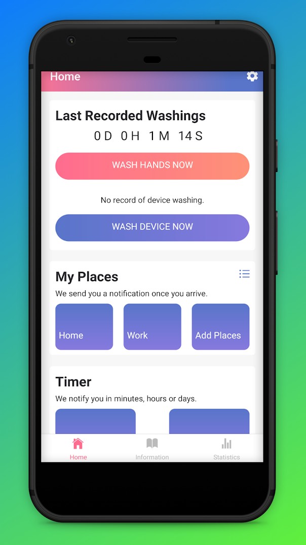 Go to settings and simply add places. The app is configured to track travelling movement so that once you arrived a saved place, it can remind you of washing hands. Receive instant location-based reminders and wash hands immediately.