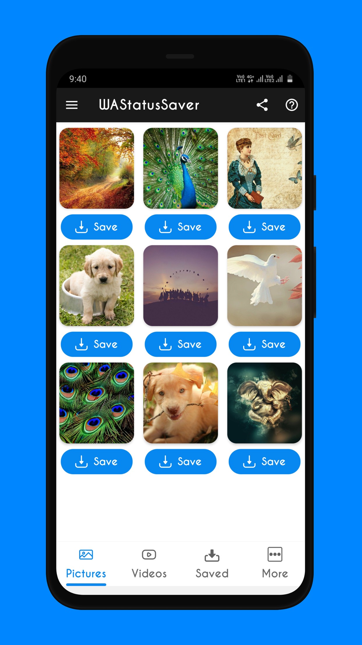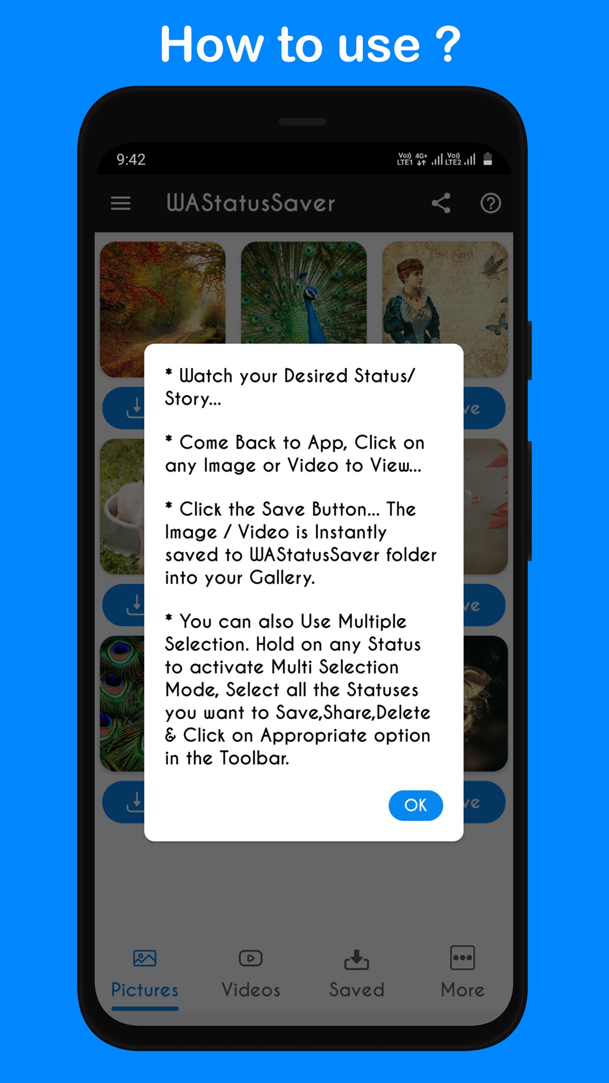 Come Back to WAStatusSaver App , Click any Image or Video to view.
