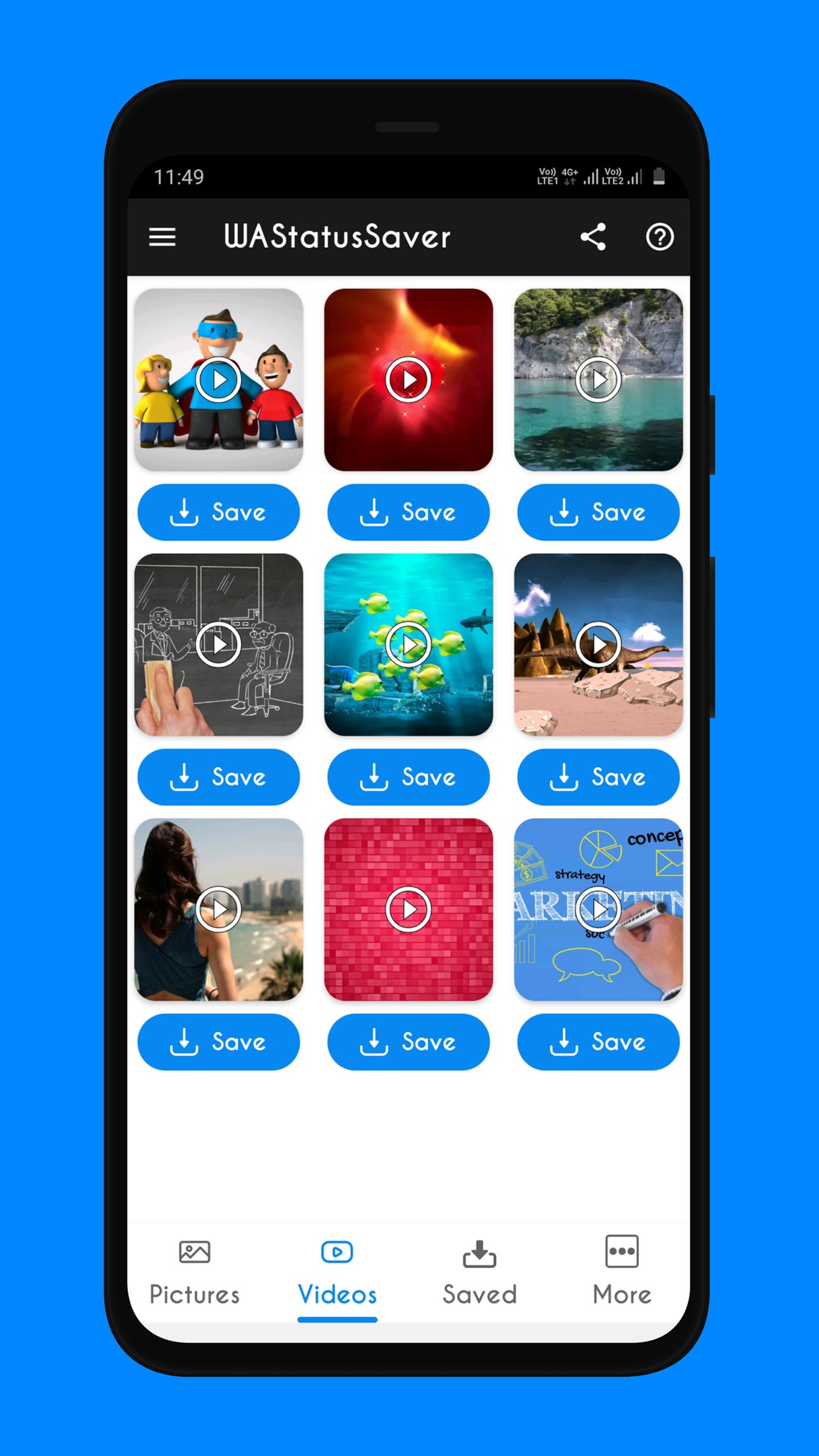Save your friends and families whatsapp status with WAStatusSaver app and keep that memory as long as you want to. For any situation or occasion, you can keep status on social media like Whatsapp and with WAStatusSaver app, you can easily save it.