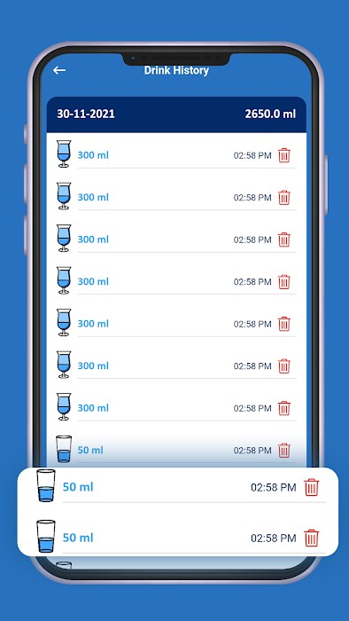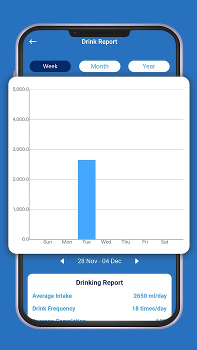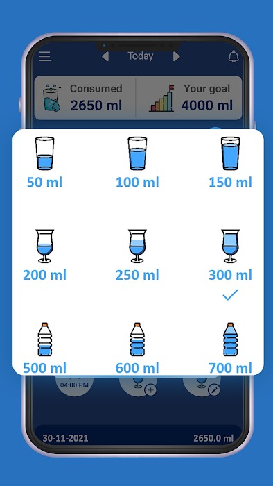 - Customized wake-up time and bedtime setting to drink water within a day.