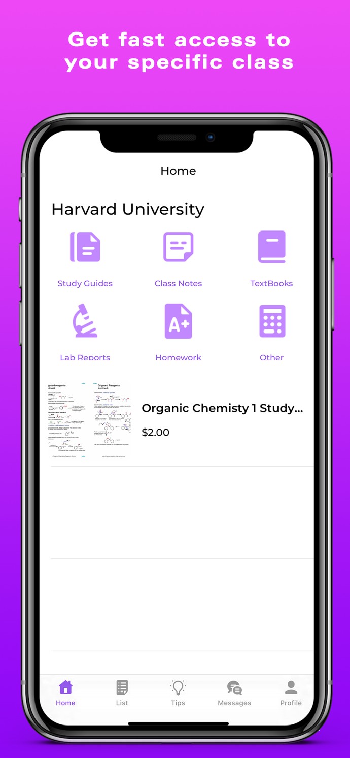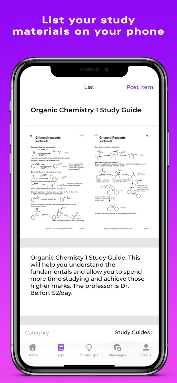 List homework, class notes, study guides and lab reports at your desired price per day, if a student wants to borrow your study guide you get paid! Yes, it’s that simple.