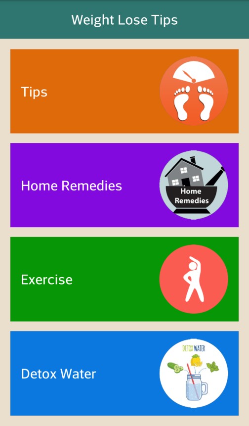 The app is developed to help such people to maintain their health and get rid of health problems. With the help of this app it will be very easy to lose weight quickly and to maintain health. The app comes with many new tips to become healthy and fresh.Weight loss app is divided into 4 different categories