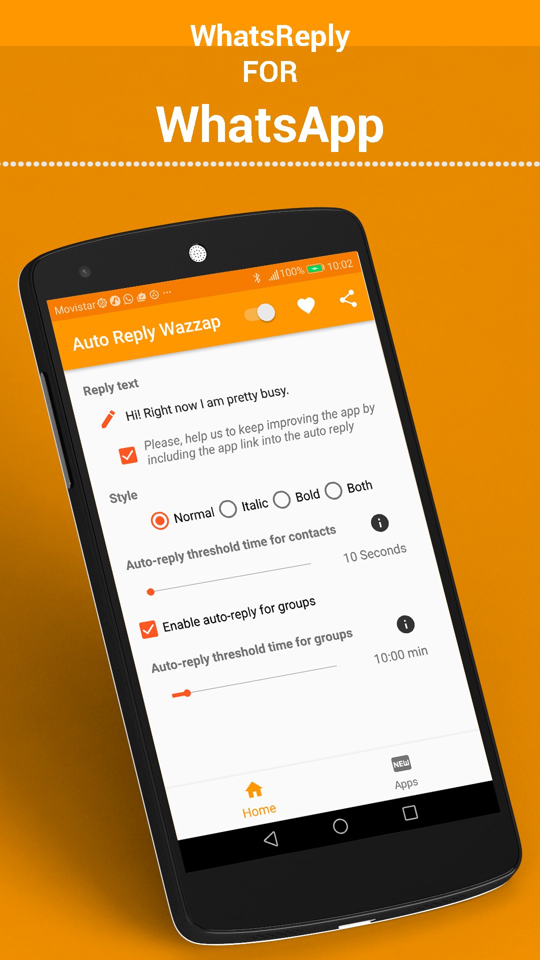 Warning: WhatsReply is not an official WhatsApp application and has no relationship whatsoever with WhatsApp inc.