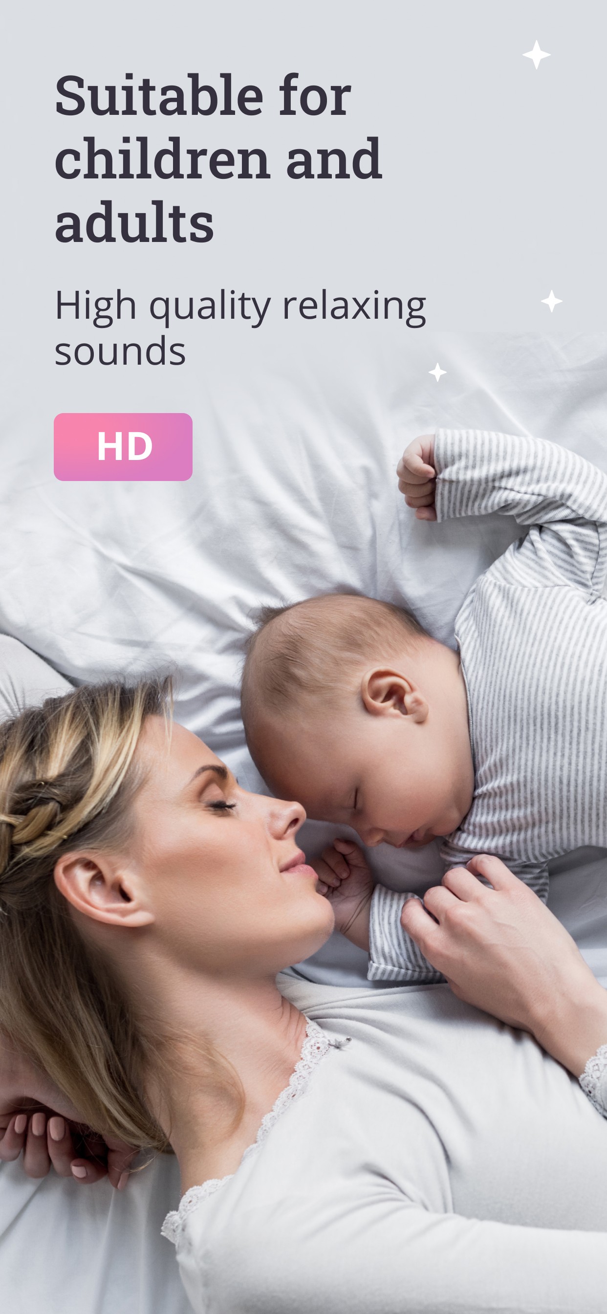 This Baby sleep sounds app is as easy to use as possible and includes ambient sounds to help you relax during the day and get a good night's sleep.