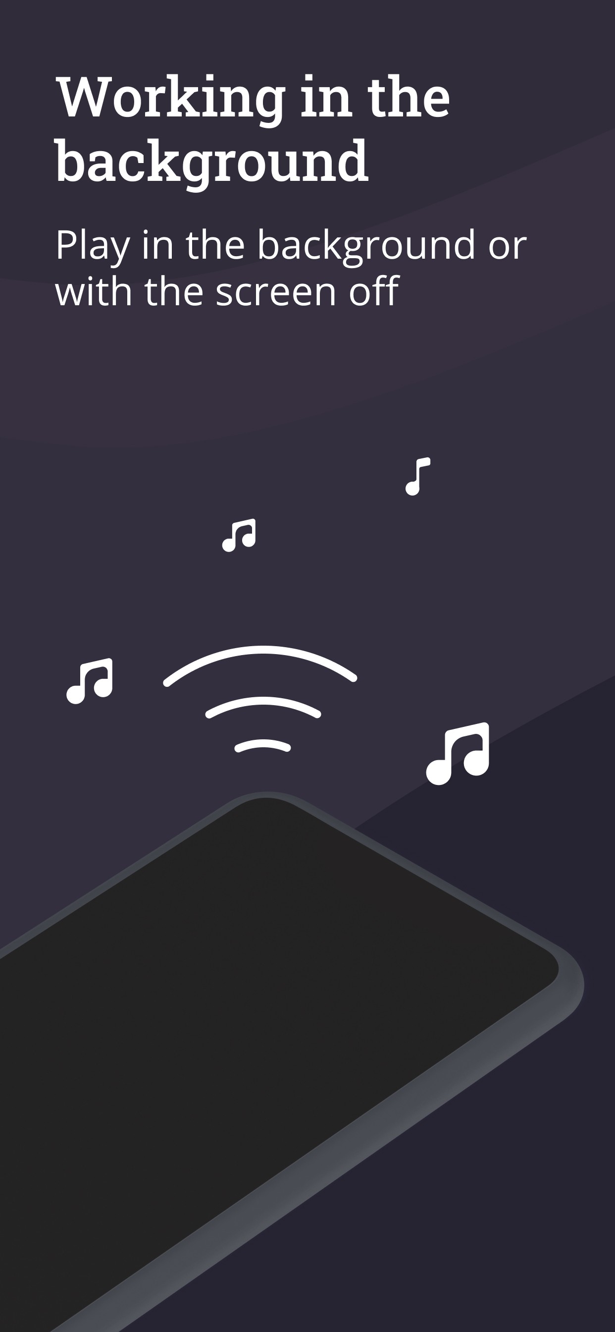 - Background playback - you can use other applications during playback. You can set a timer, switch to background mode, or turn off the screen. After the time expires, the sound will be smoothly turned off, the application will be closed.