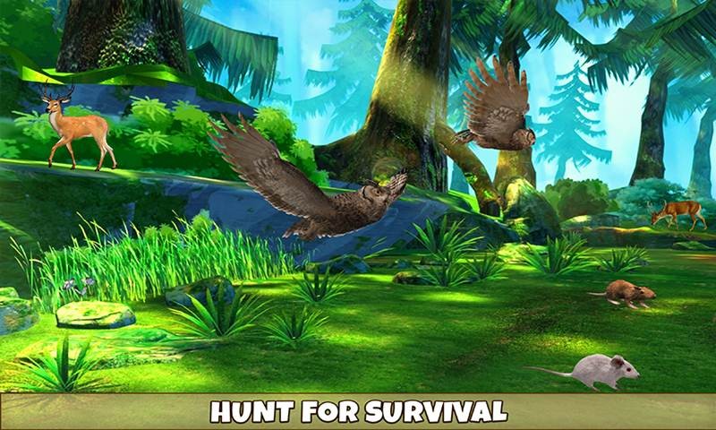 Wild Owl Bird family Survival game contains two modes like Story Mode and Free Mode. Enjoy the realistic flight of an Owl and watch your prey in the bird's eye view. Protect your Owl family from the herbivorous beast of the jungle in this owl family adventure game.