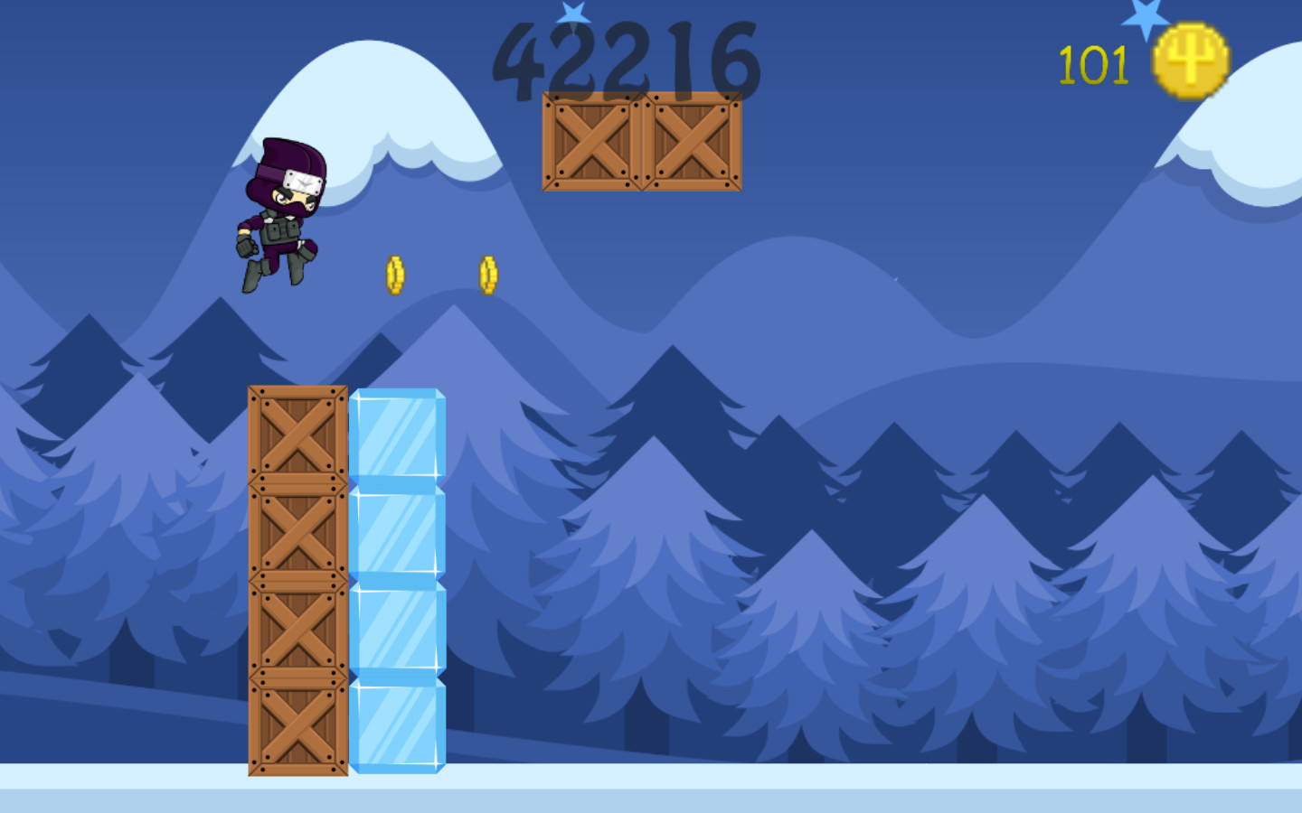 Run, jump and get through realms by avoiding deadly boxes and icy crystals! Get as far as you can, earn as much gold as you can and be the best.