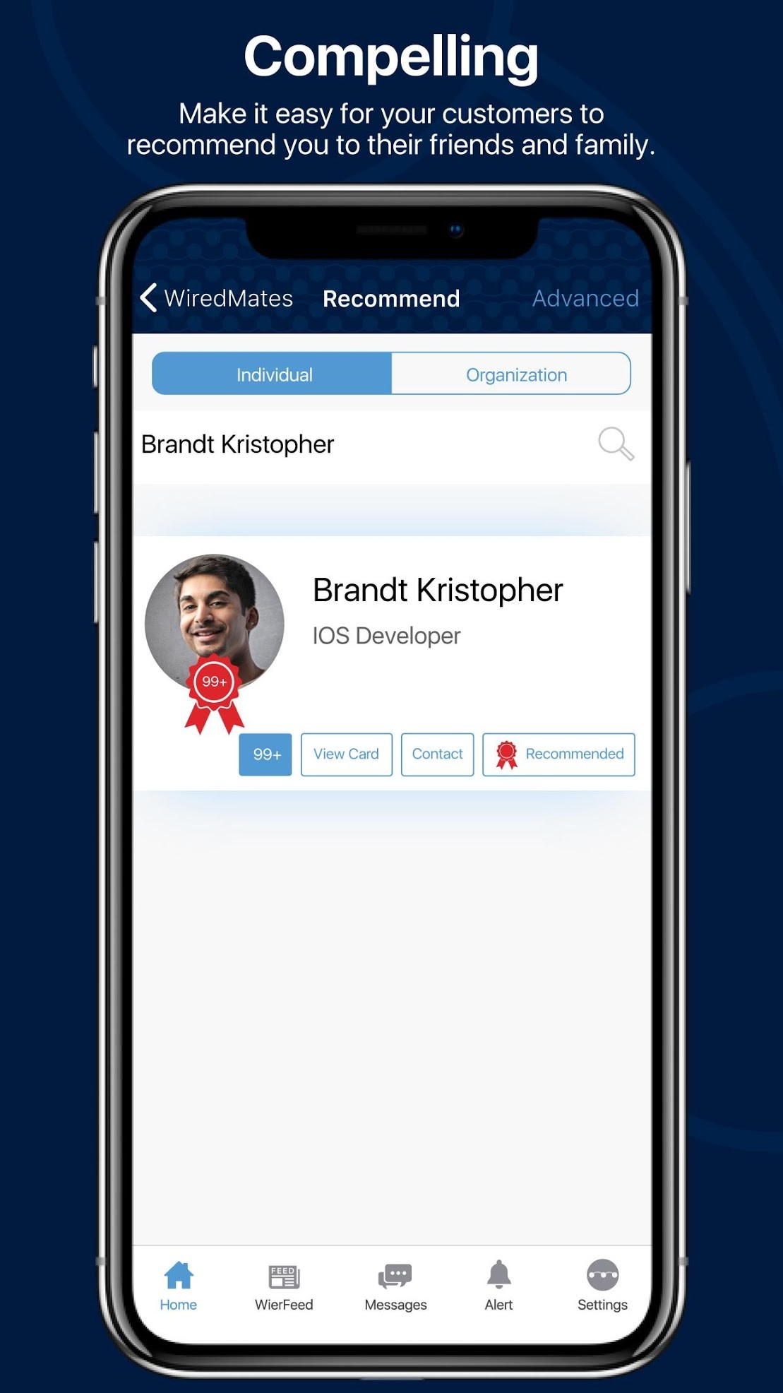 For Service Providers: Joining WiredMates grows your referral network by helping happy clients recommend you to not just one person offhandedly, but their entire network simultaneously. Posting helpful information, testimonials, and successful client projects regularly helps you stay top of mind with your network and shows that you know your stuff and are really good at what you do. Give your digital business card to existing and potential customers, and rest easy that it is always up-to-date despite phone number or role changes and you always have it on hand—there’s no forgetting it or running out.
