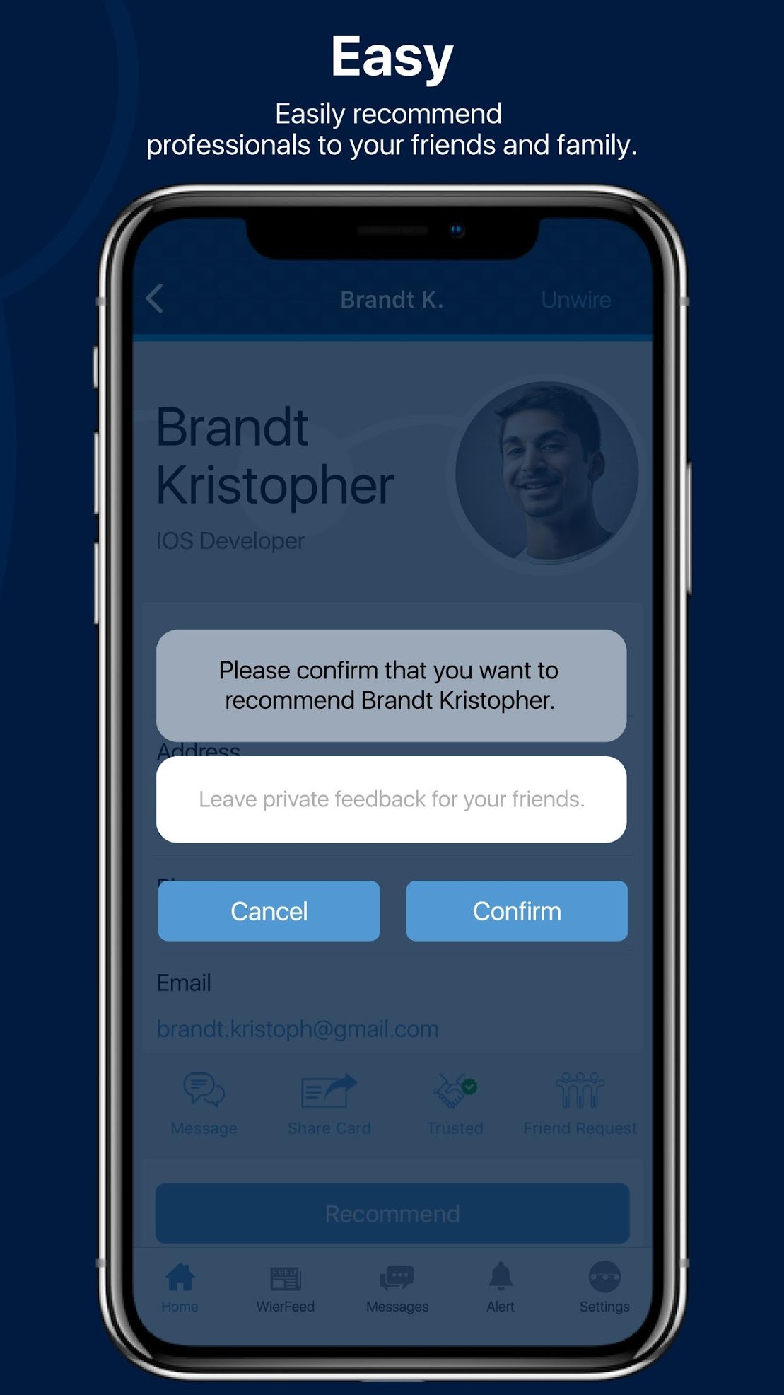 In-app messaging: Send encrypted text to people in your network to show appreciation for recommending you, to give them more detail about a service provider, or follow up and make sure your friend or colleague had as great of an experience as you did.
