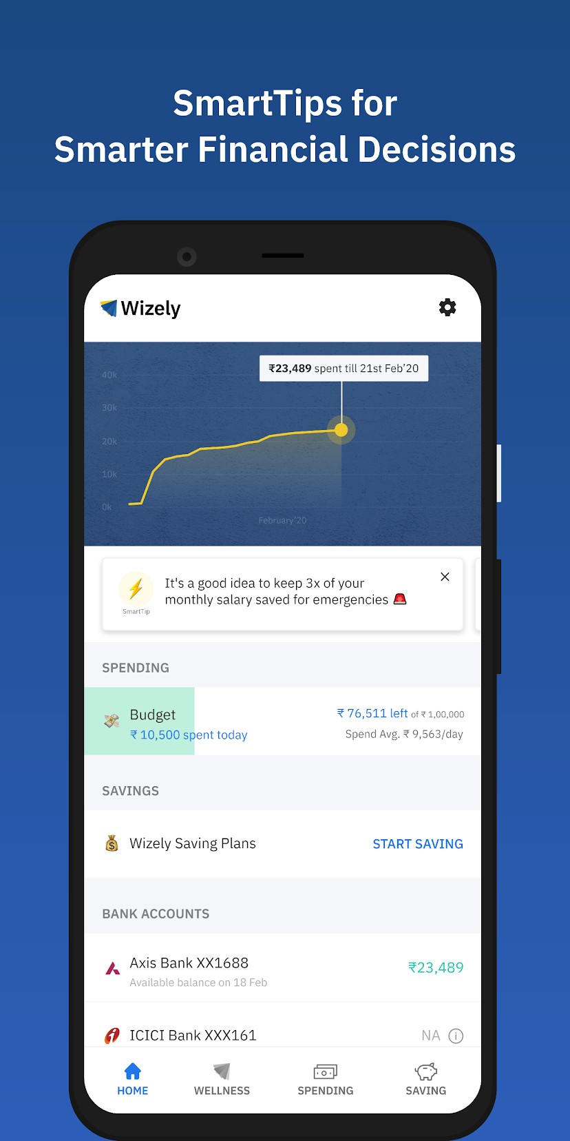 Say hello to Wizely - one of India’s fastest-growing apps for financial wellness. If you have ever wondered how to save money & budget better, you have found the right app that’s being used by over half a million Indians. With our personalised smart alerts, you will be on track to managing your finances with ease and confidence.