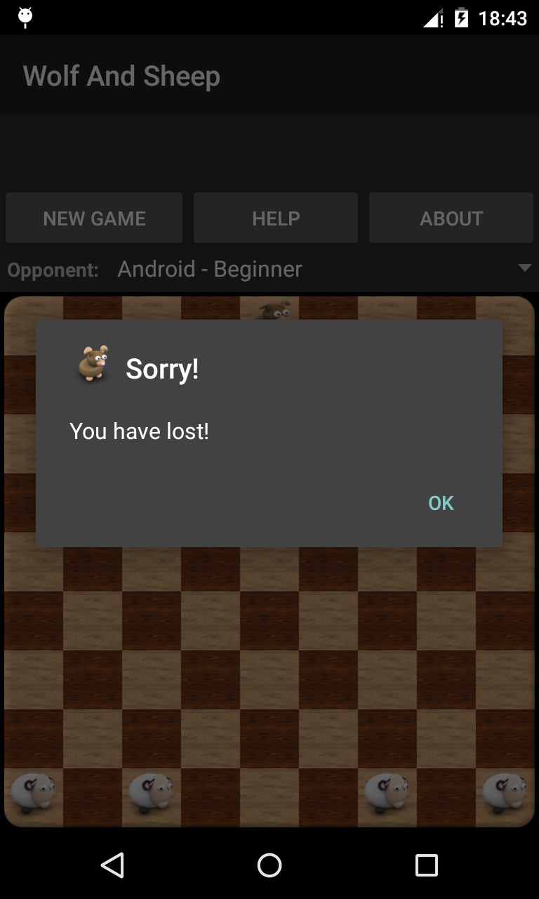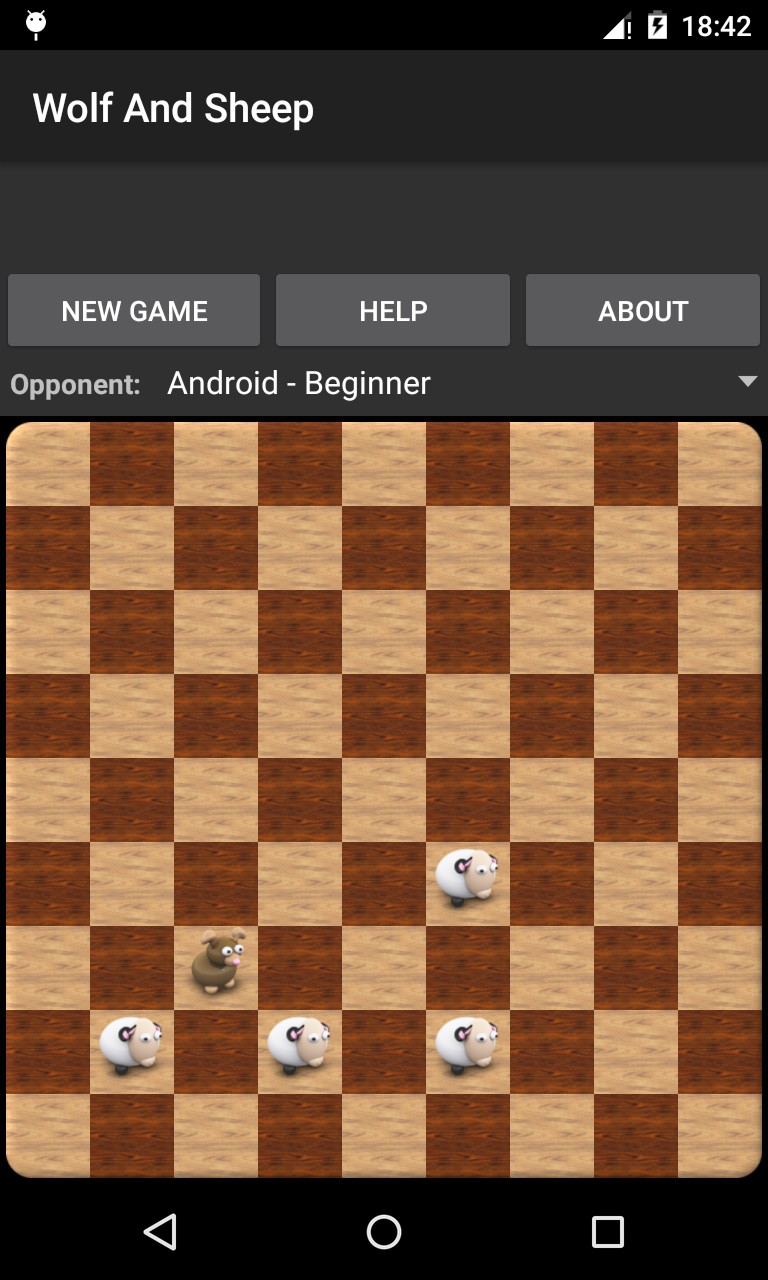 In this game human plays with four sheep and Android or human with one wolf.