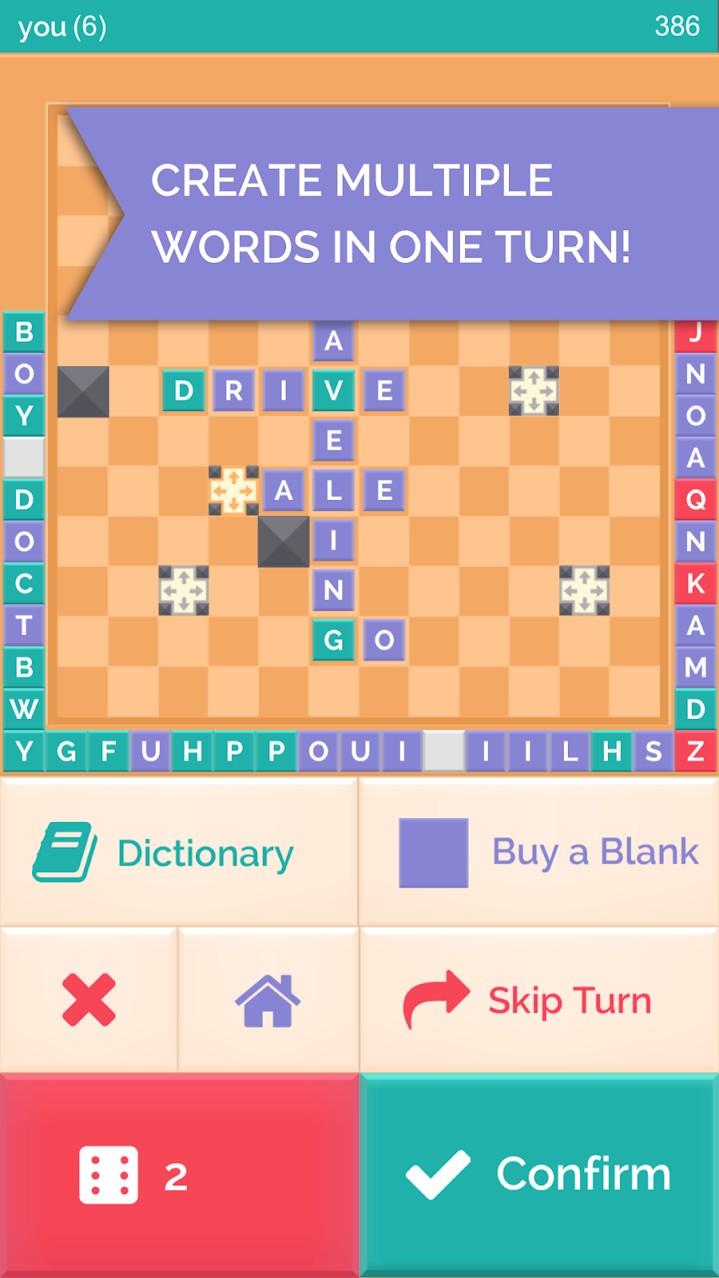 - Randomly placed BLOCKS stop players from building words in that direction.