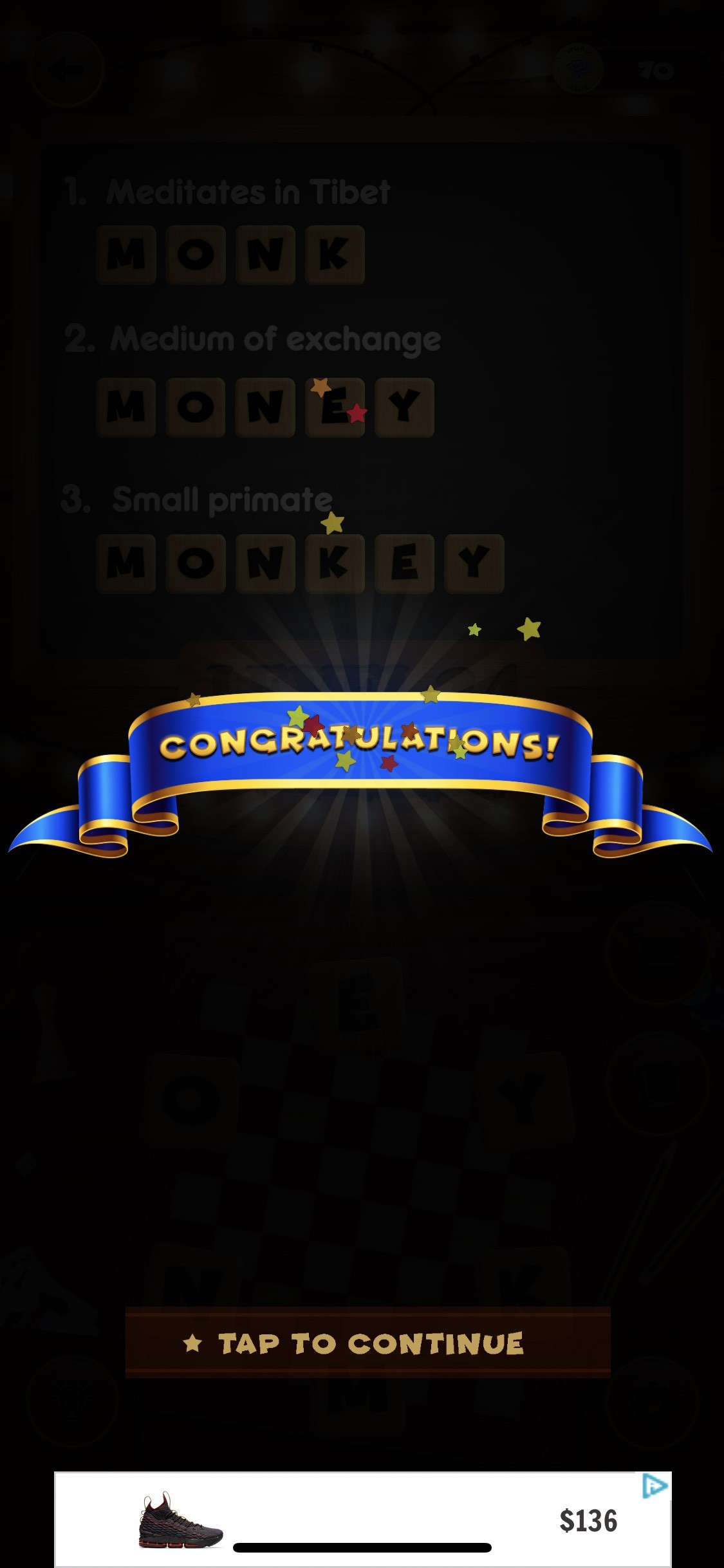 -Simply swipe your finger to connect the scrambled letters to solve for the corresponding clues.