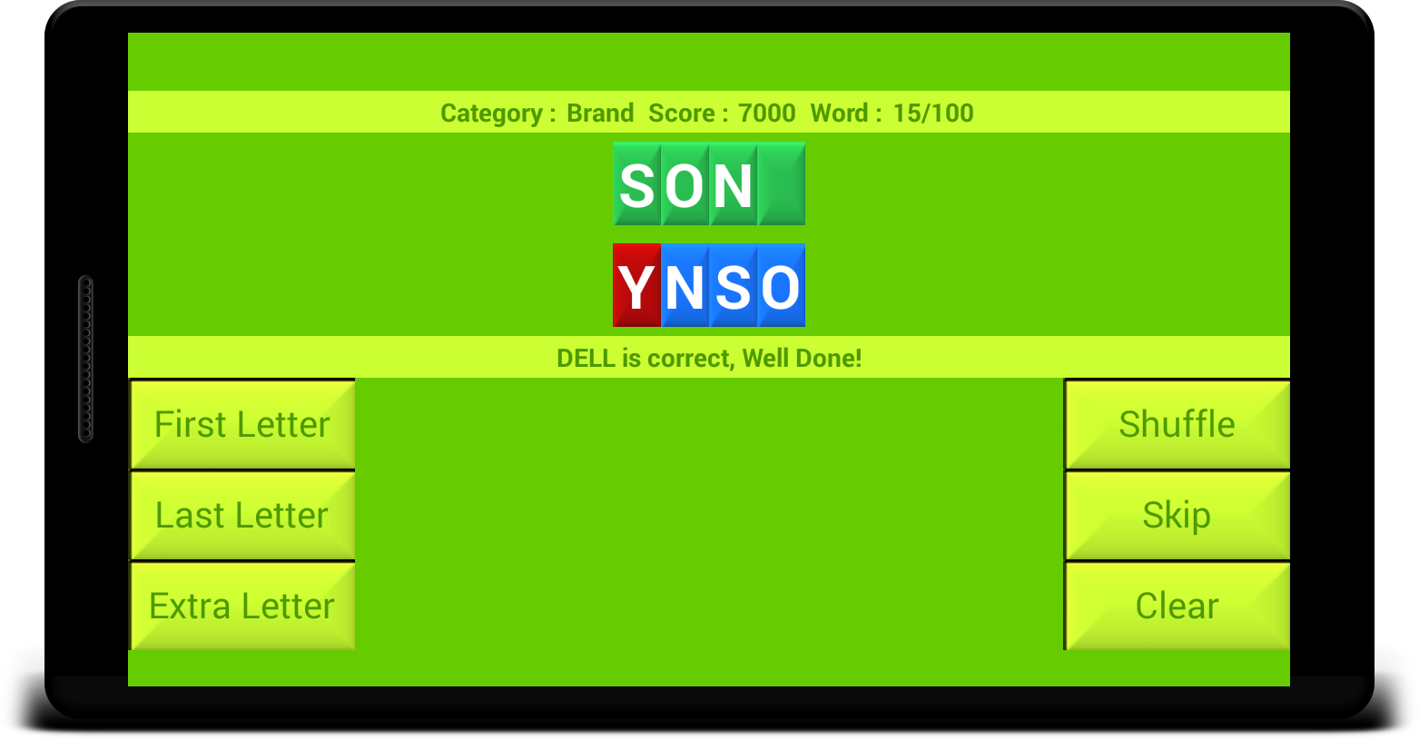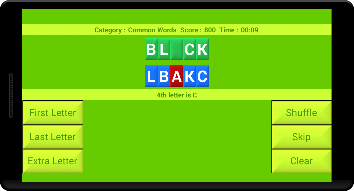 A jumbled word is shown to you based on selected category,you need to identify the correct word