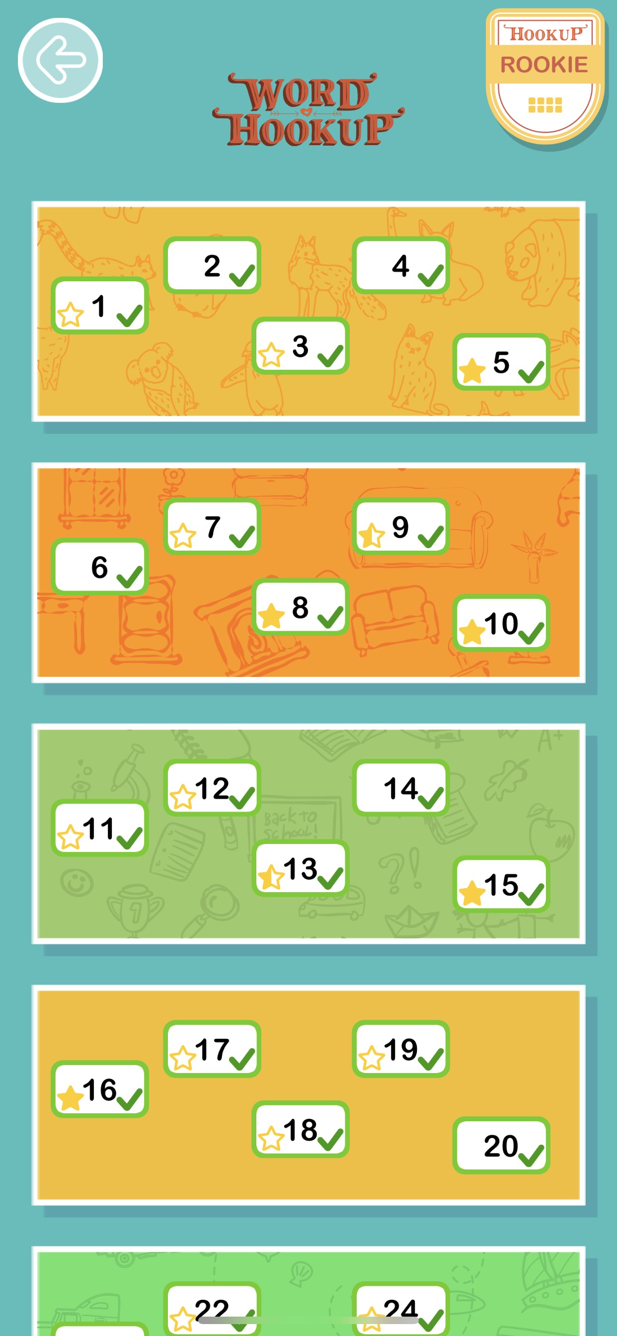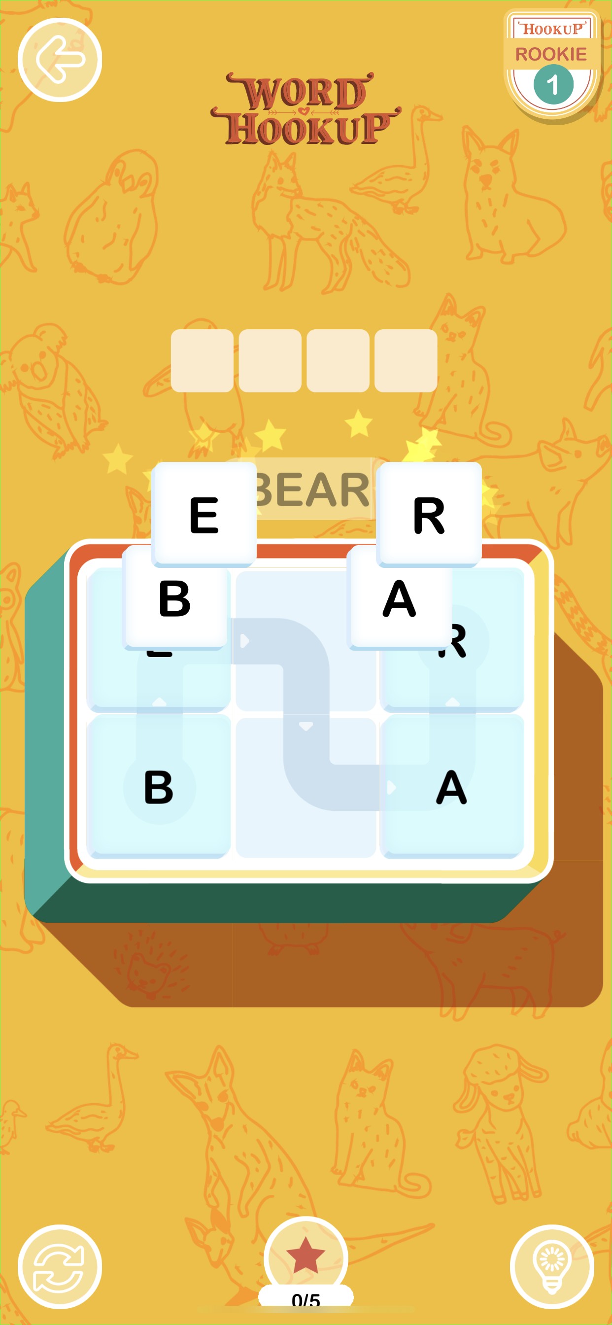 - Earn STARS by Hooking-up other valid words. These words may be of any length and need not be from current theme!