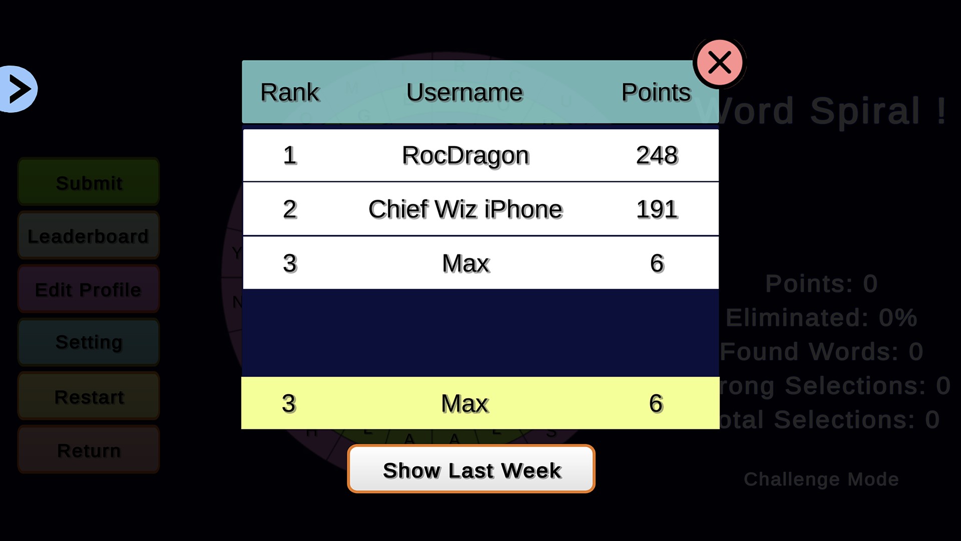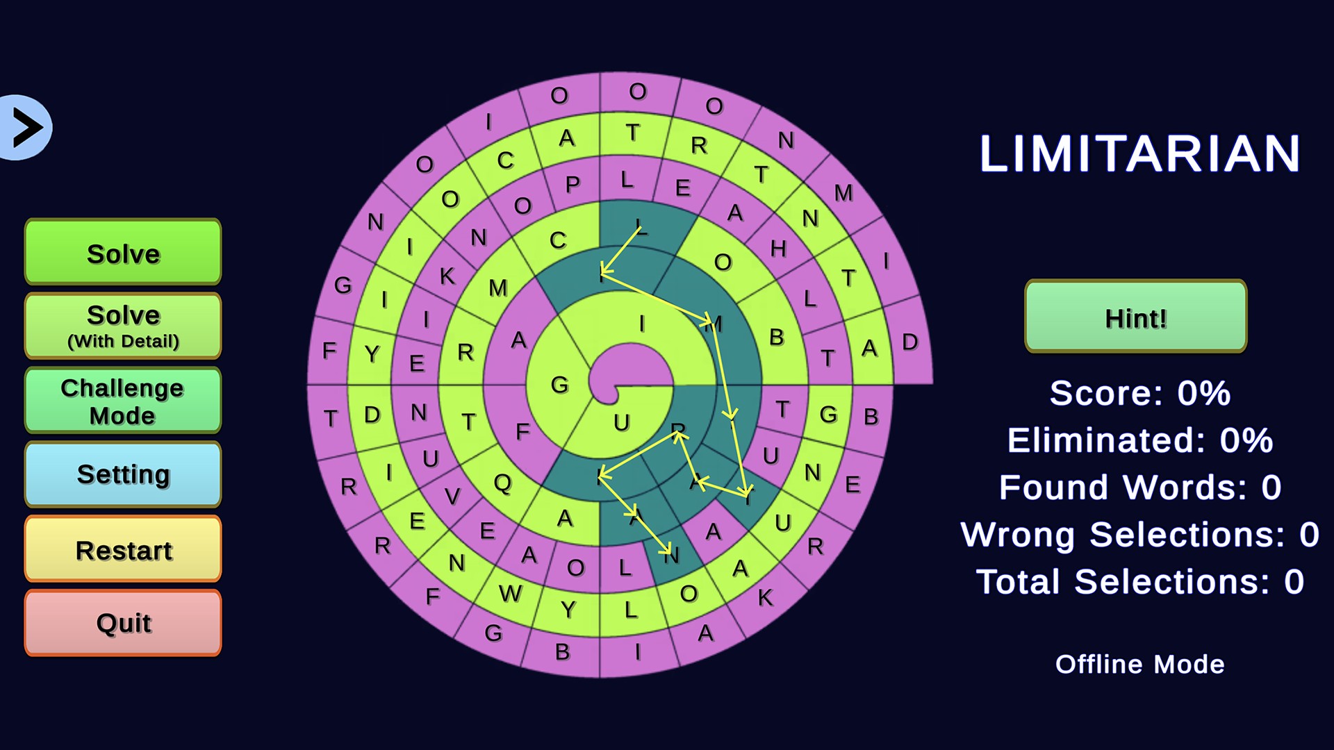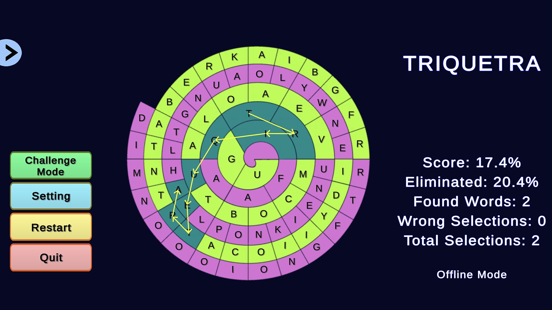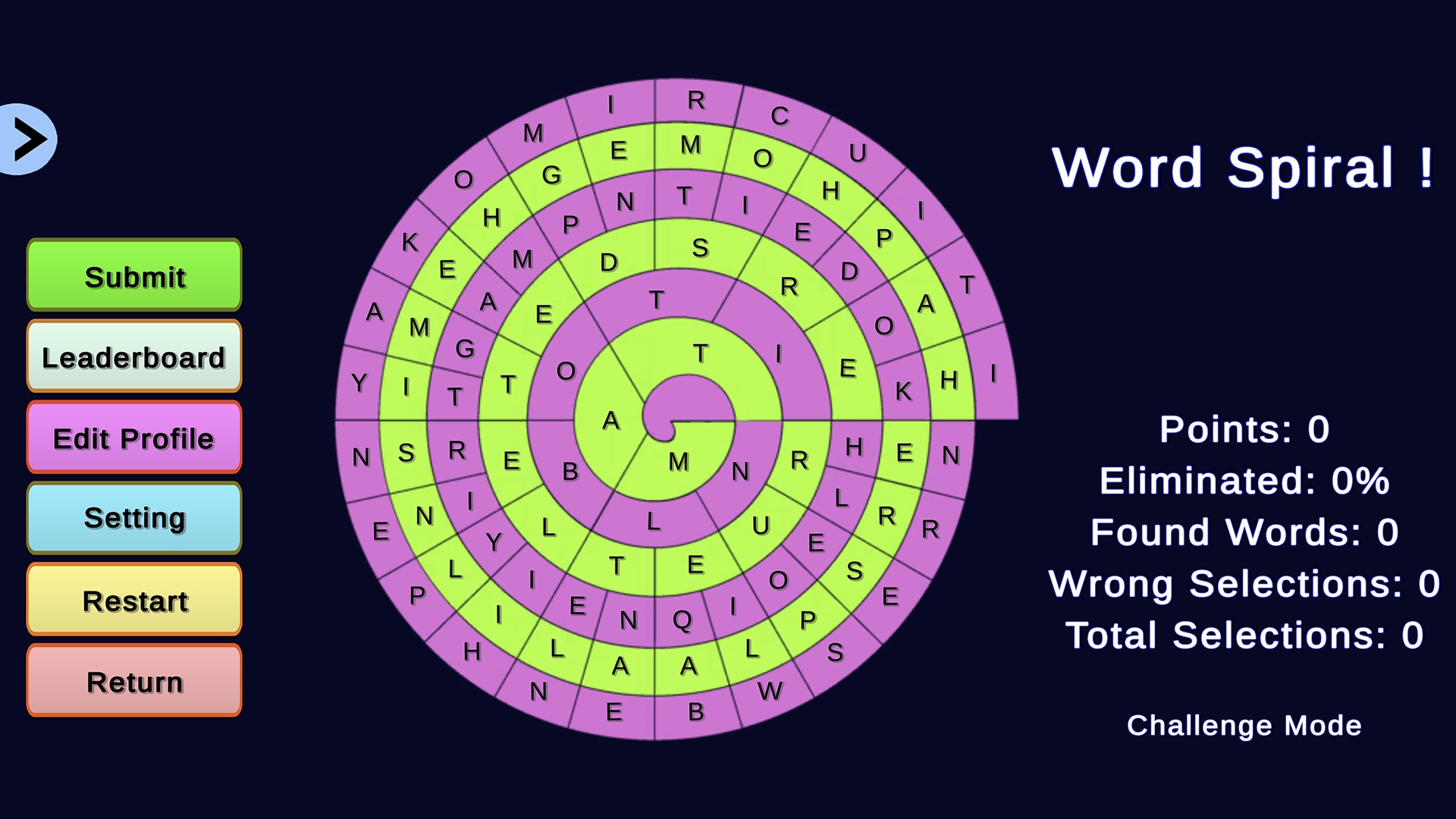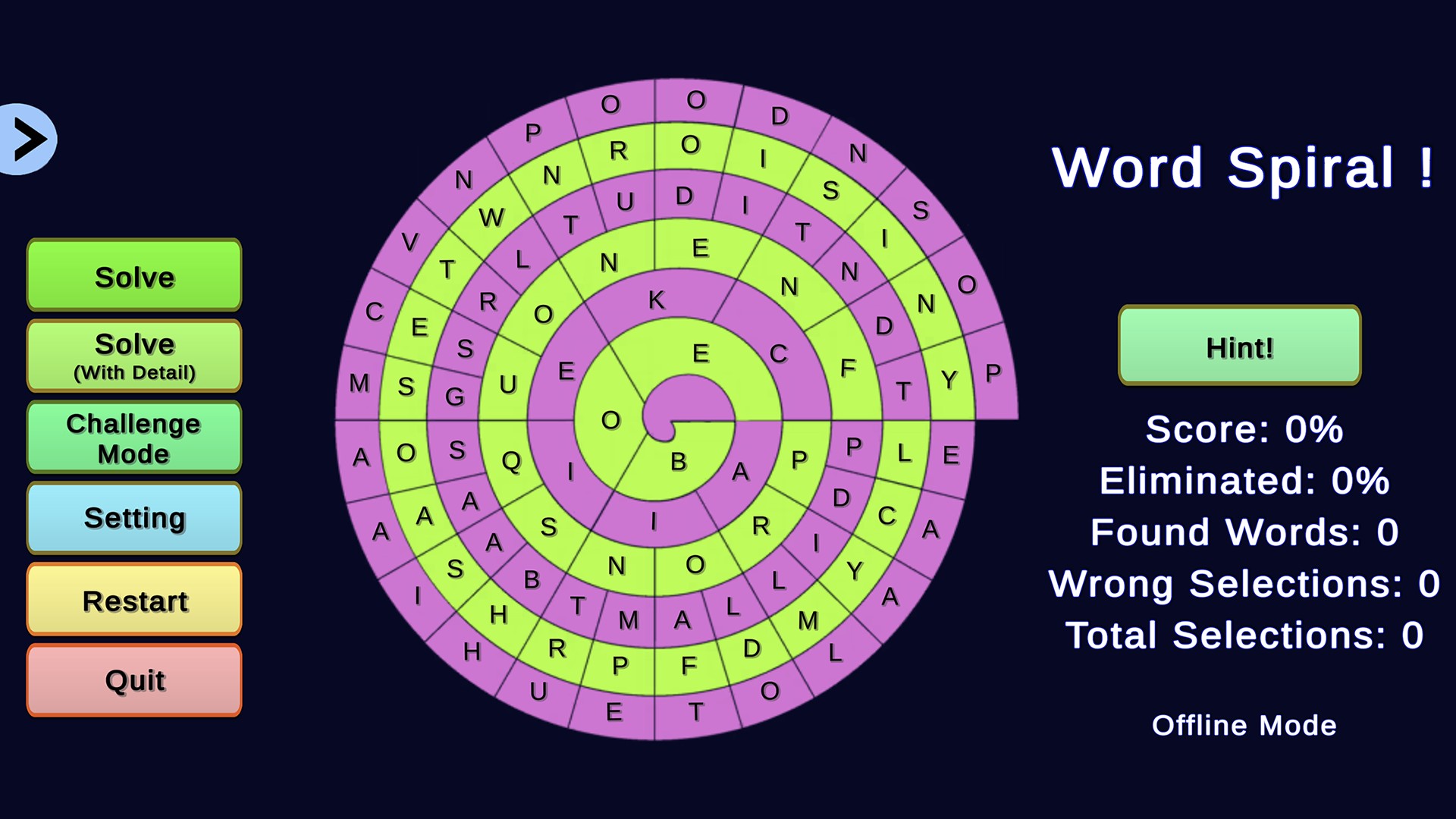 Connect neighboring letters to form words. Double-click the last letter to enter the word and watch it be removed a letter at ta to,e from the spiral game board. Clear the entire board. Easy to play hard to master. Play against the AI which is hard to beat. Or play the weekly challenge board against other players for the highest score on the leaderboard. A new game appears every Sunday morning. Many wordsmiths ahead to challenge.