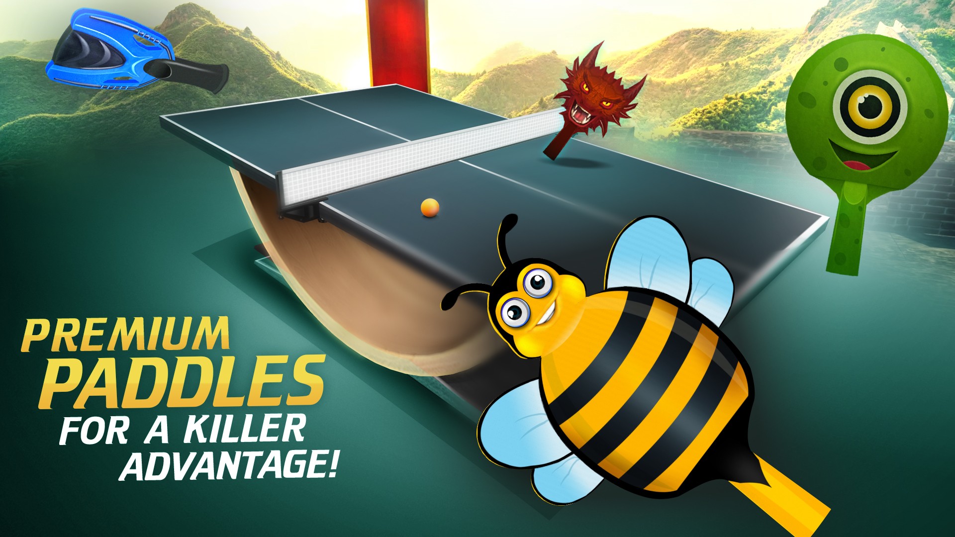 • Customize your ping pong game experience with over hundreds of paddle variations, 15 exotic tablematerials & more. Gotta unlock 'em all. Now you can truly "create a racket" & nobody will mind!