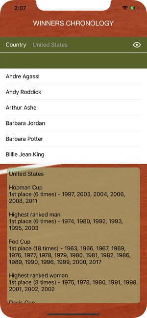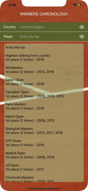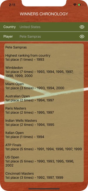 A simple application for tennis fans and not only, that allows to get winners' chronology of single players of Grand Slam and Masters series tournaments by one touch (Open Era).