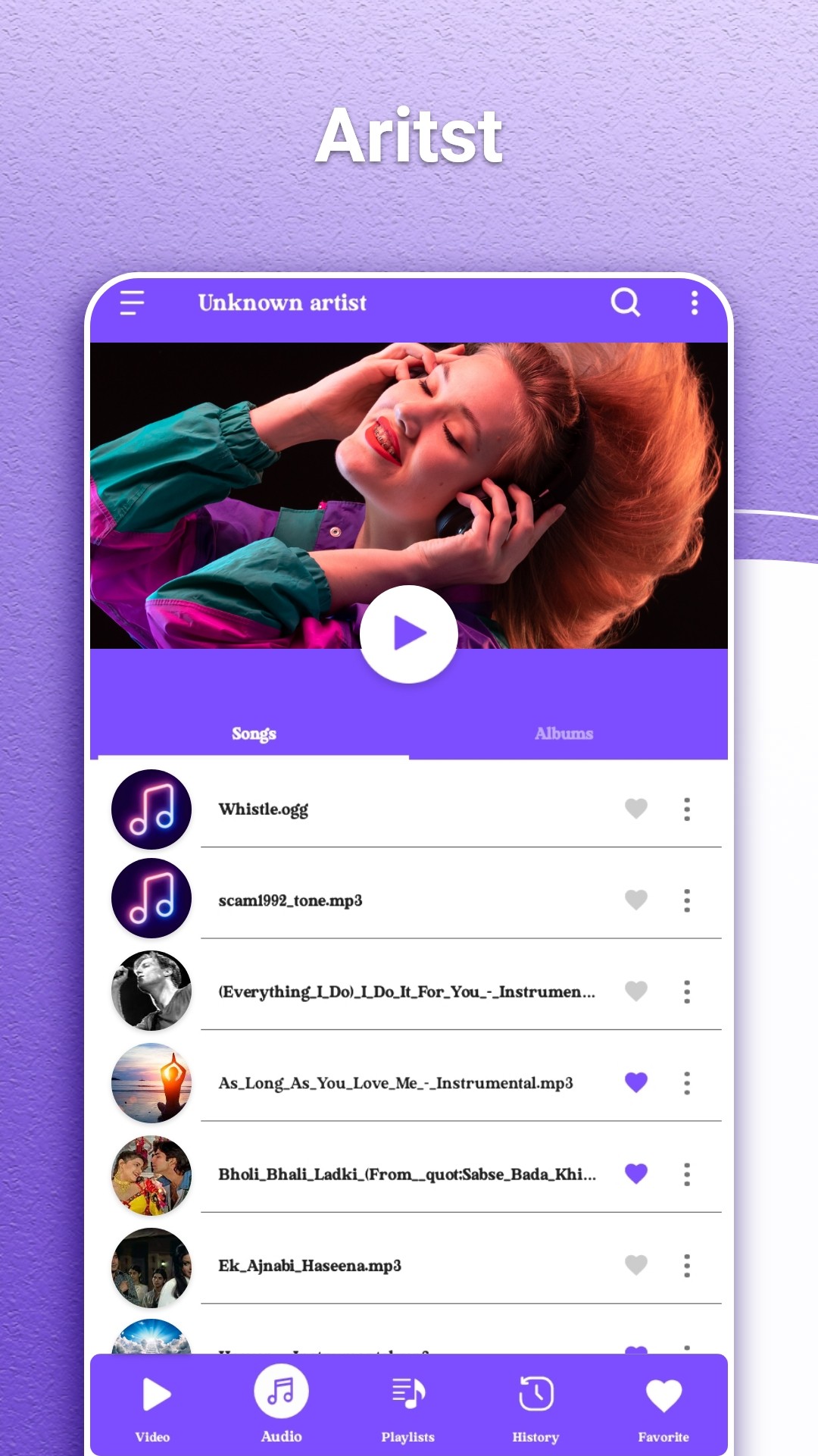 Playlist : Now WXPlayer - 4K Mp4 HD Player comes up with some new features like a playlist with which this MP4 Hd player app allows you to create a playlist of your favorite songs. For this just go to music in WXPlayer - 4K Mp4 HD Player and tap on 3 dots on the right side of song/music and tap on creating a playlist.