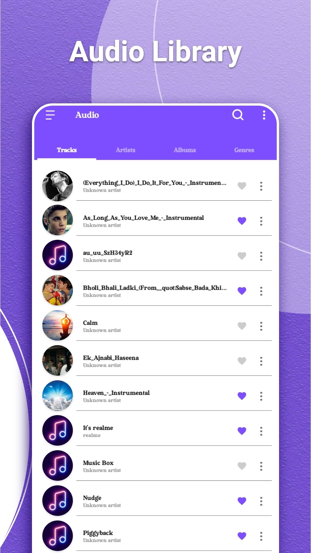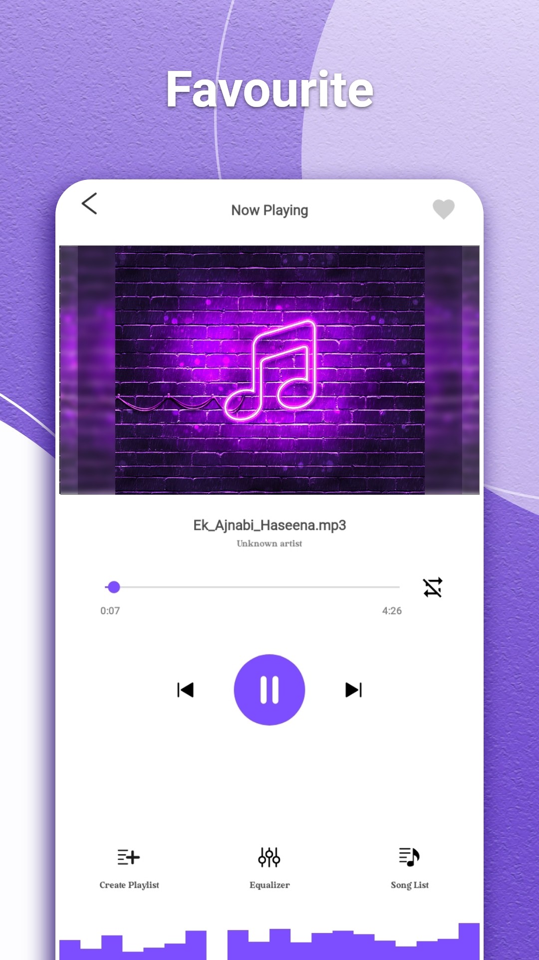 Favourites : WXPlayer - 4K Mp4 HD Player comes up with the new feature of favorites so now add your favorite videos and music files to your favorite list by tapping on the heart icon and that video or music file would be added to the favorite list.