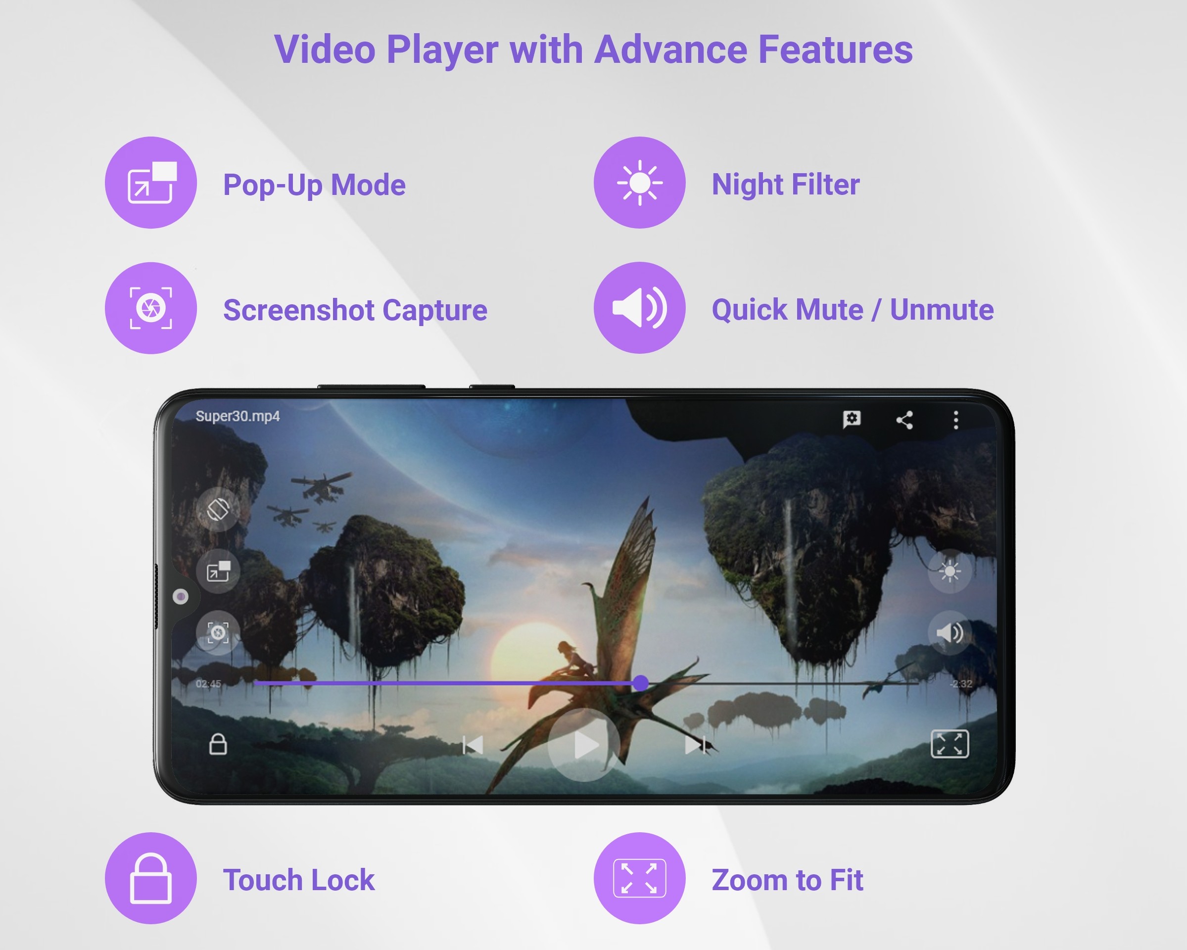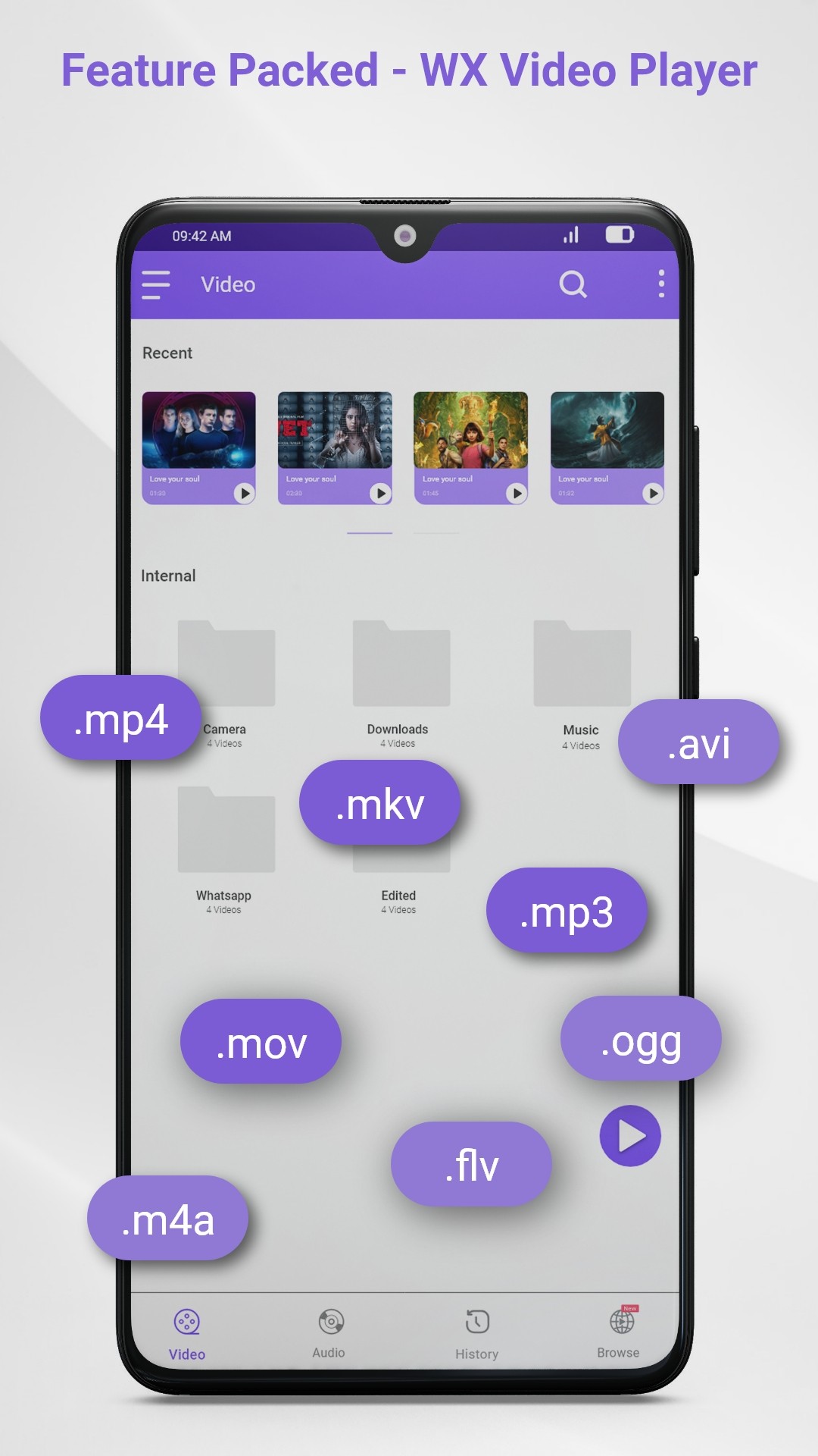 WXPlayer - Mp4 HD Video Player is the best video player in Google Play Store to play HD videos in all formats. This max player Video Player MP4 HD supports all video formats, 4K & Ultra HD video files in high definition to play videos with advanced support. This free video player is packed with tons of free features like Pinch to Zoom, Custom Gesture control, 3D sound effect, free movies in all languages, custom playback speed, digital equalizer and picture in picture (PIP) mode making this mix Player the best xplayer video player.