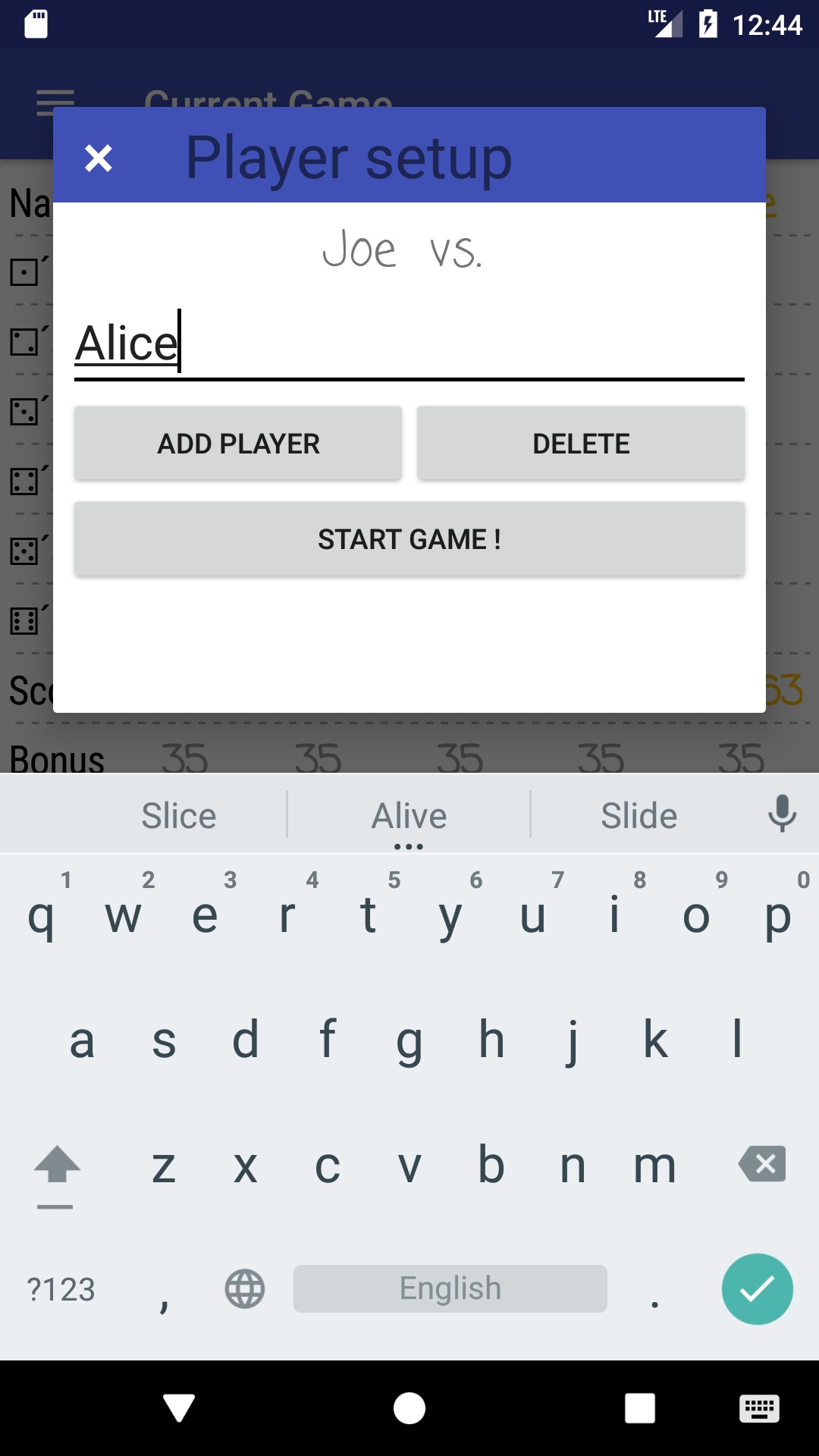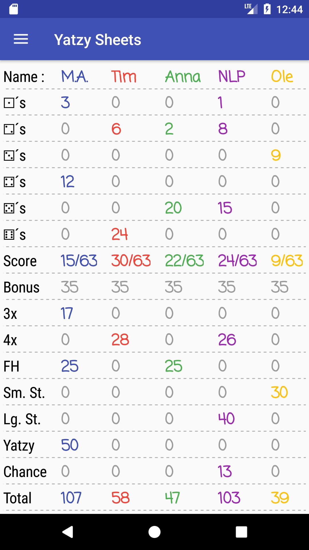 This app requires you to be in physical company with your opponents. Now a days people are locking themselves up alone at home and only communicating with friends and relatives online, instead of spending time with their actual company. This app is all you need to play a good old game of yatzy (or yahtzee as some call it). You can be as many players as you like, but for bigger tournaments it is recommended that you play 3-4 people per device and use more phones/tables to speed up the game. Enjoy!