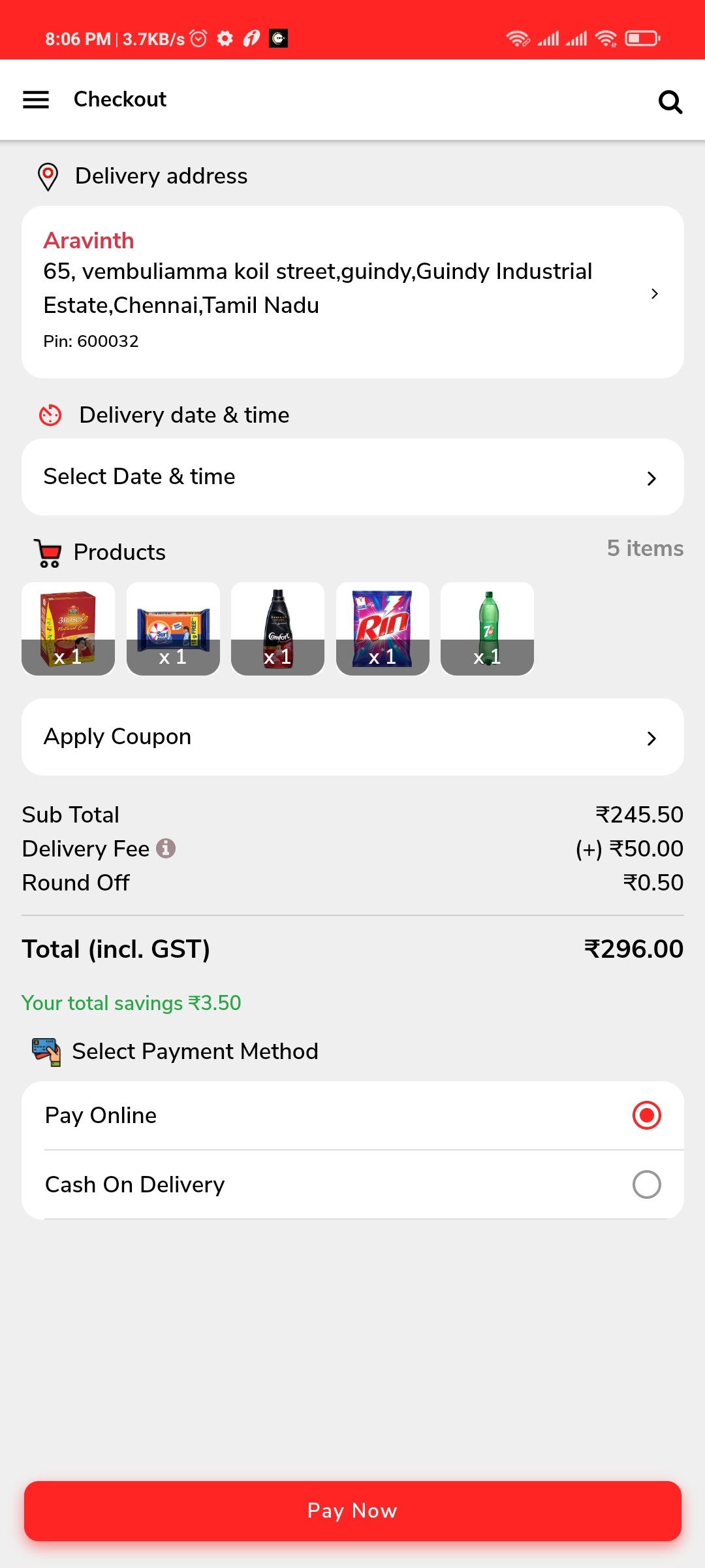 -Place your order online and get it delivered to your home or office at a convenient date & time of