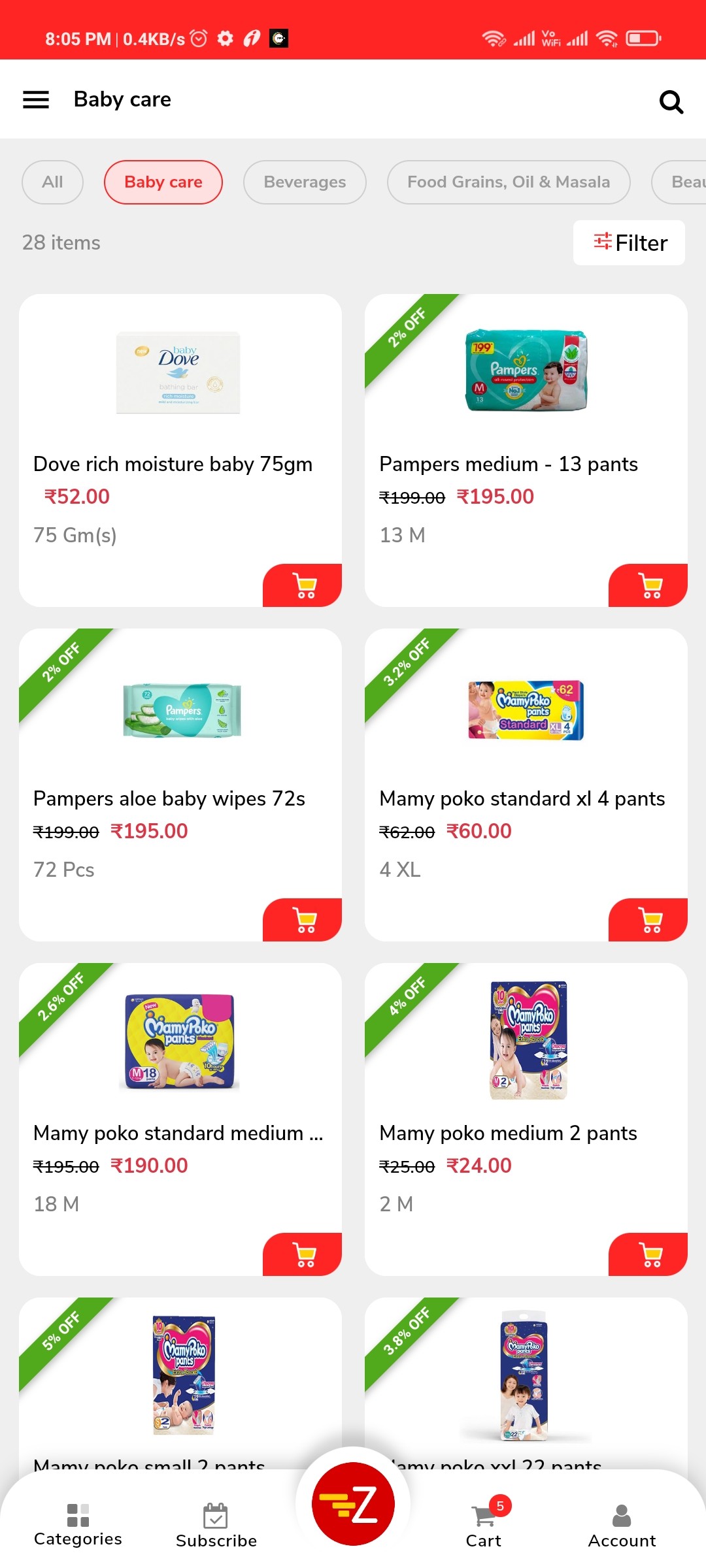 essentials, baby products, pet care products, health, beauty, and hygiene products, and other