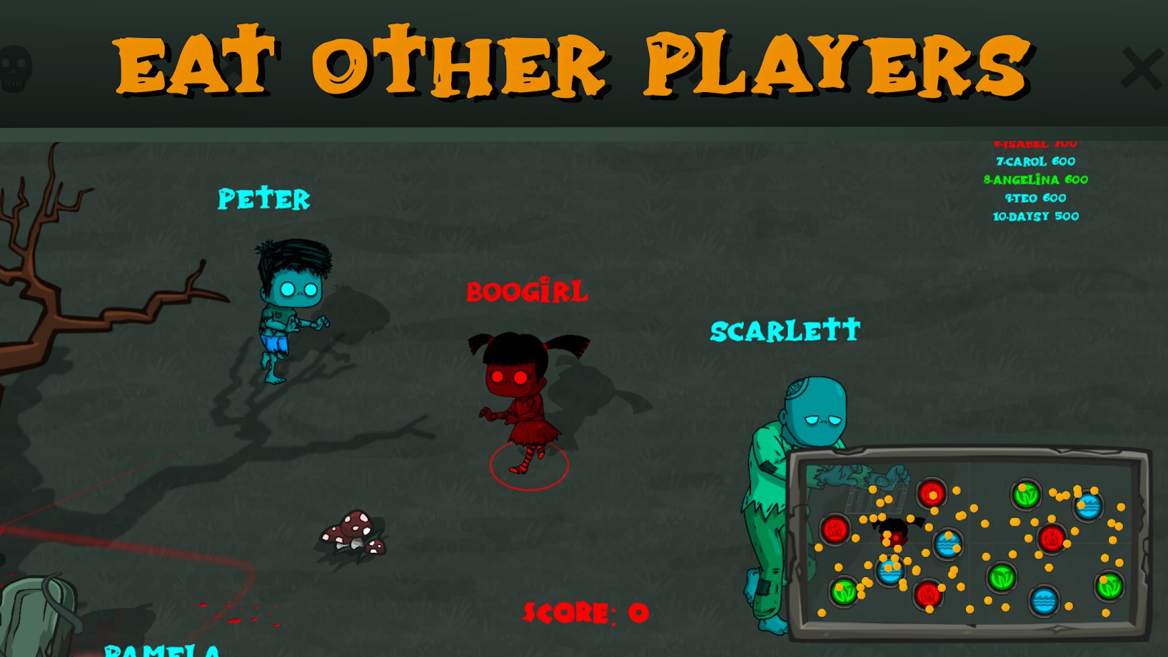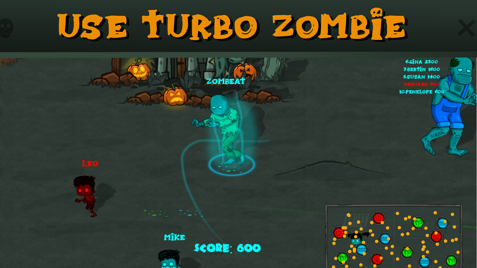 Welcome to Zombeat.io! Enter to HorrorLand and control your zombie. Choose your colour and eat all others zombies. Live your own halloween party! You can become the biggest zombie eating everything you can. Be the best player in this halloween. You can see the evolution of your zombie and dominate the game. Can you become the Monsterserker?