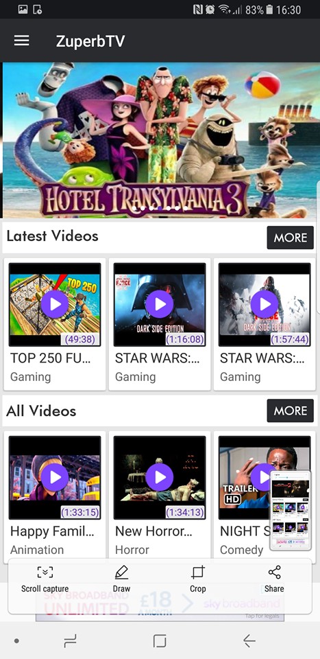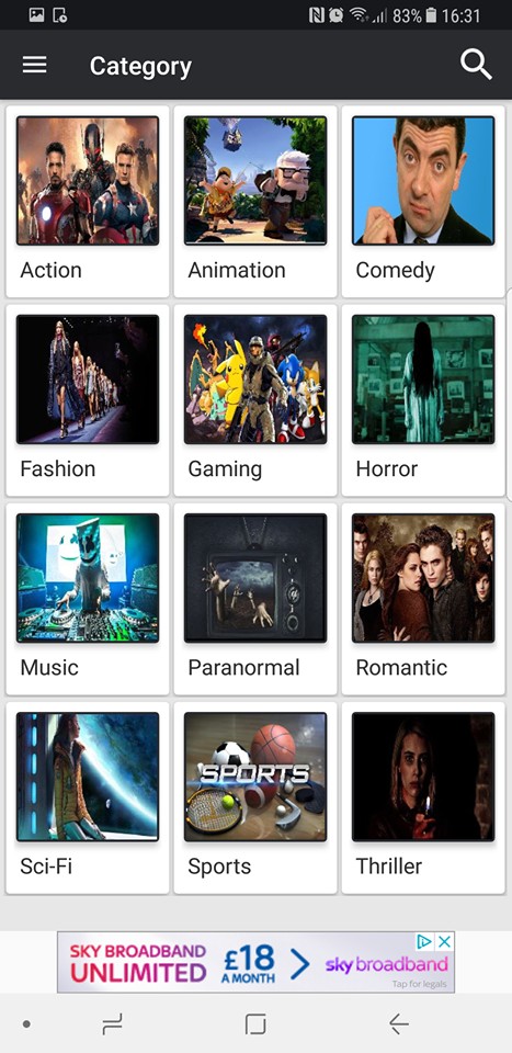 Browse through multiple categories from action videos to adventure and animated videos as Zuperb - Video Streaming App aims to brings you non-stop entertainment with over 20+ categories i.e. comedy channels, conspiracy, drama and fantasy videos, horror, and paranormal videos with a more scary touch, romantic and music compilation for all ages, sports and sci-fi channels.